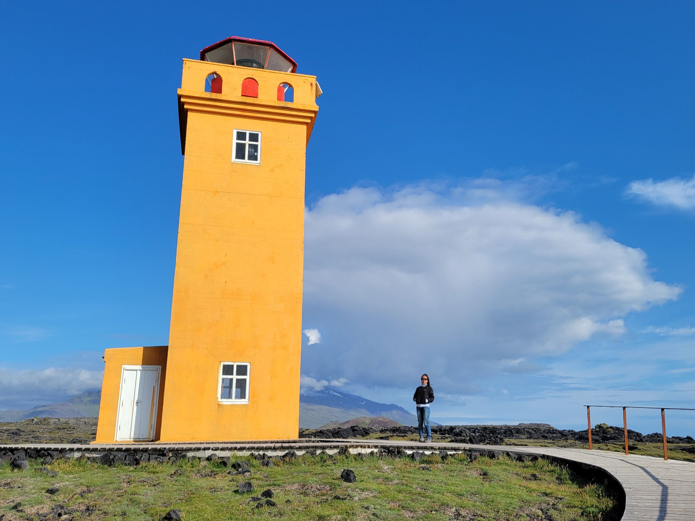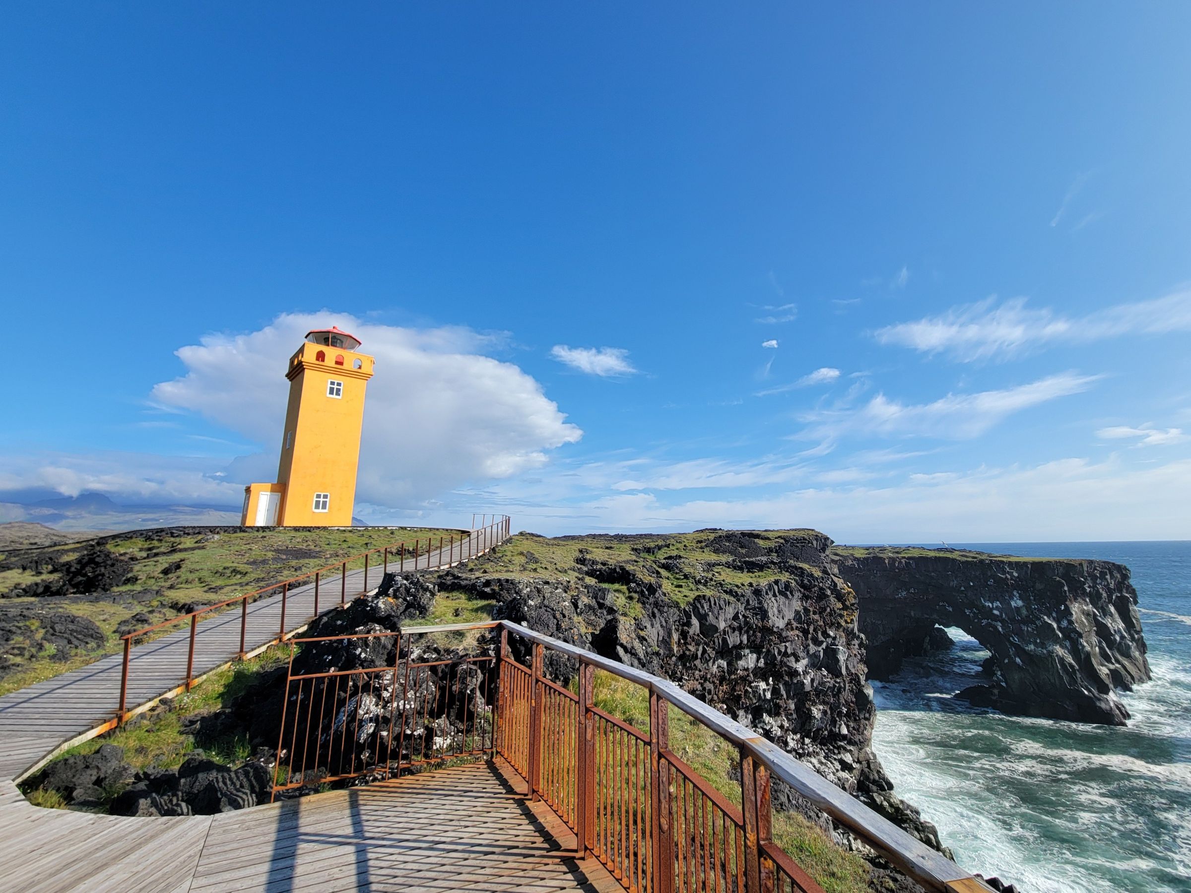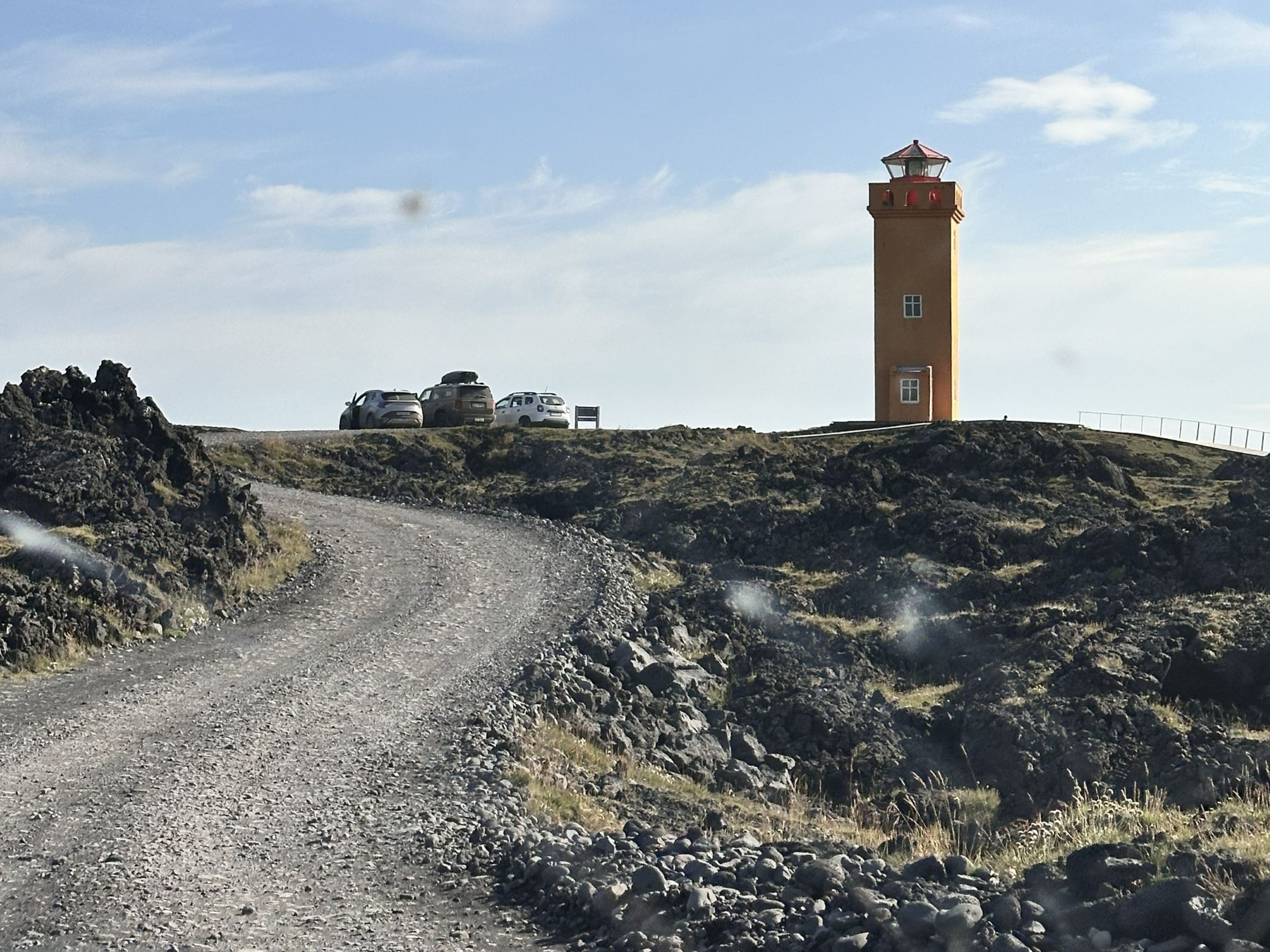 오로라 사진으로 유명한 장소 구경을 마치고 계속 스나이펠스네스(Snæfellsnes) 반도의 서쪽을 향해 달린다. 반도의 서쪽 끝부분 전체는 화산의 이름을 따서 스나이펠스요쿨 국립공원(Snæfellsjökuls þjóðgarður)으로 지정되어 있는데, 입구 마을에 아주 멋진 건물의 최신 비지터센터가 만들어져 있었지만, 이미 오후 5시가 넘어서 문을 닫았기 때문에 그냥 지나쳐서 바로 땅끝의 노란 등대를 찾아갔다.