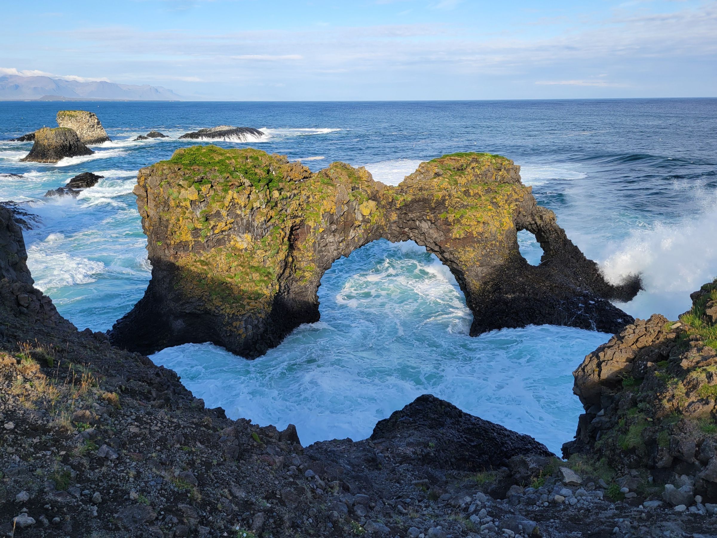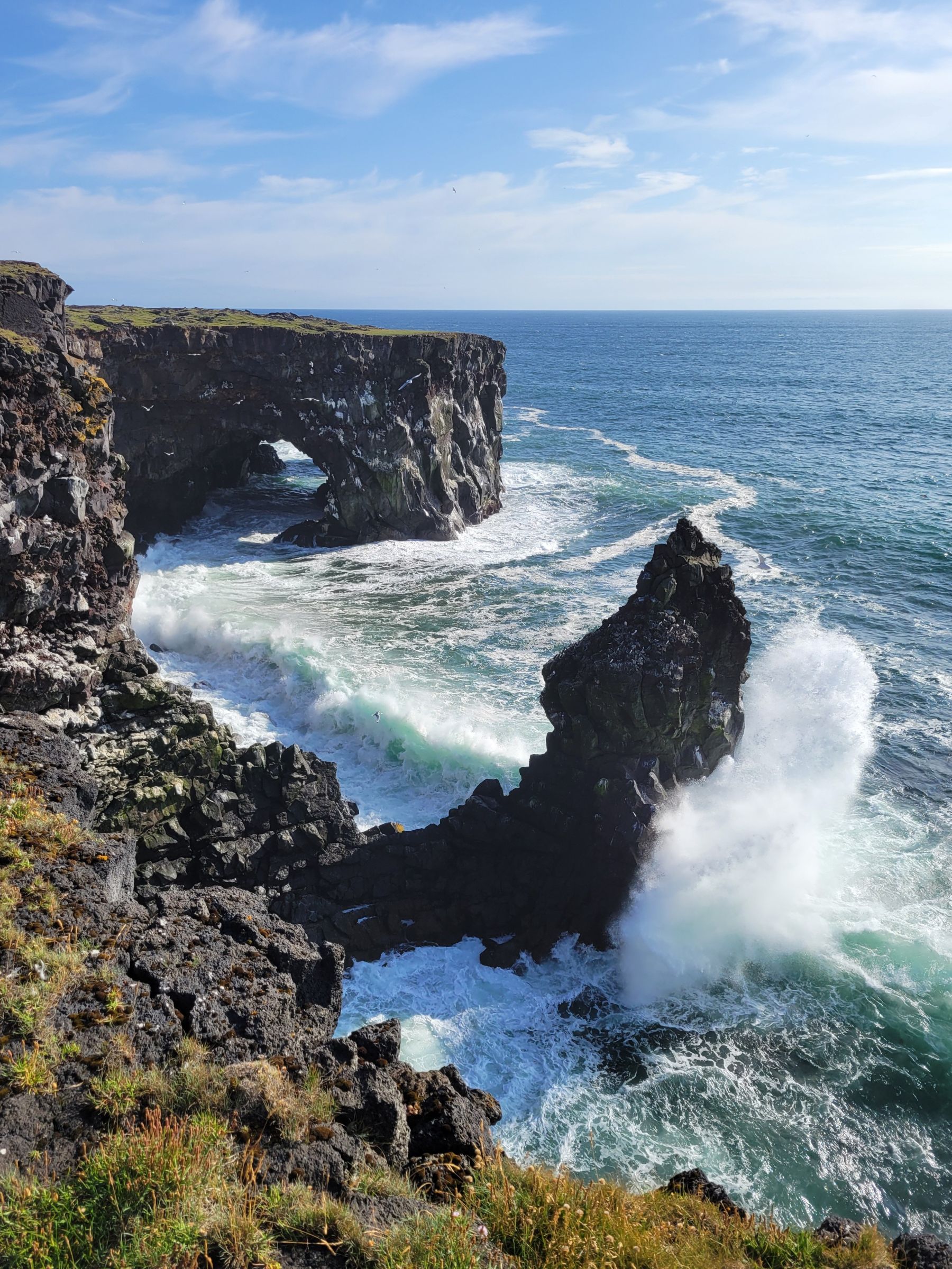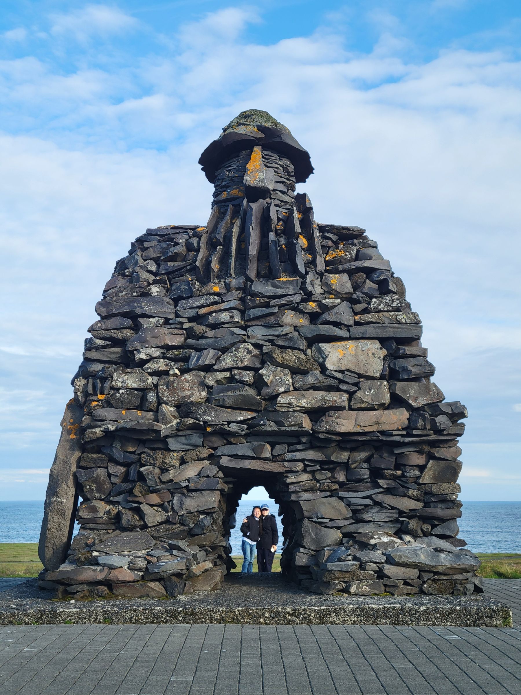 돌을 쌓아서 만든 커다란 코와 수염의 묘사가 인상적이었던 이 조형물 자체는 비교적 최근인 1985년에 아이슬란드 조각가가 만들었단다. 찬바람이 점점 더 심해졌지만, 여기도 바닷가 절벽에 구멍 뚫린 바위가 있다고 해서 정말 마지막으로 찾아가보기로 했다.