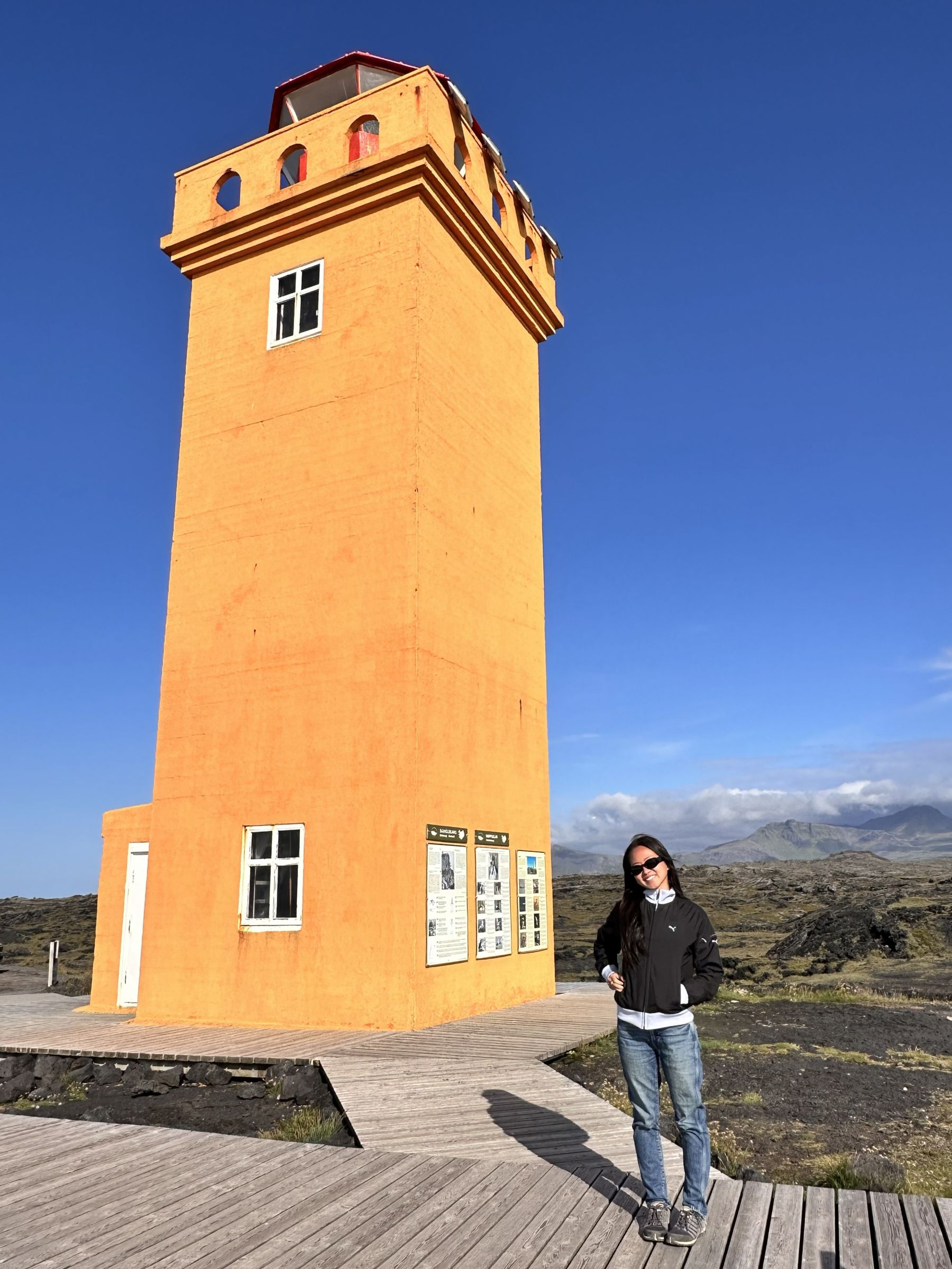 영어로는 대부분 오렌지색이라 표현을 하는 것 같지만, 위기주부는 개나리색이라 부르고 싶은 색깔의 정사각 기둥 모양의 이 등대는 두 개의 이름을 가지고 있다는데... 지금 우리처럼 육지에서 가까이 볼 때는 '피난처 등대'라는 뜻의 스칼라스나가비티(Skálasnagaviti)로 불리지만,