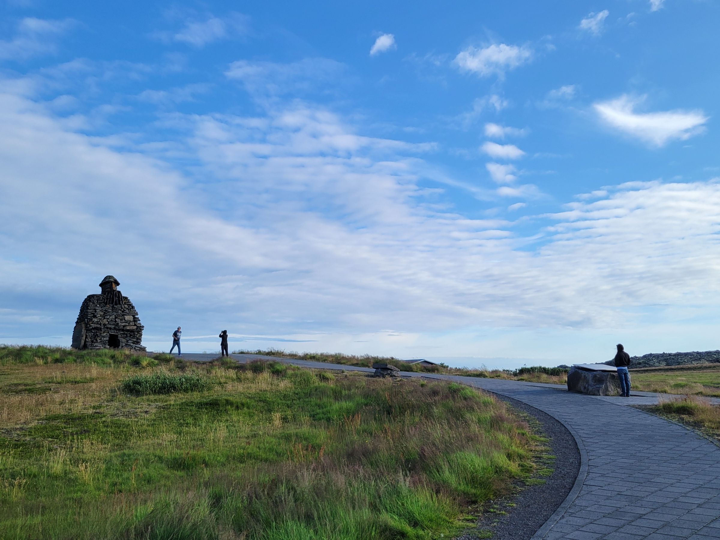 슬슬 어두워지기 시작해서 그런지 여기서 처음 봤을 때는 굴뚝이 있는 돌로 만든 집인 줄 알았지만, 오른쪽의 안내판을 열심히 읽은 따님이 이 지역 신화 속에 등장하는 반인반트롤(half-man half-troll)의 거인 바르두르(Bárður)의 석상이라고 알려주었다.