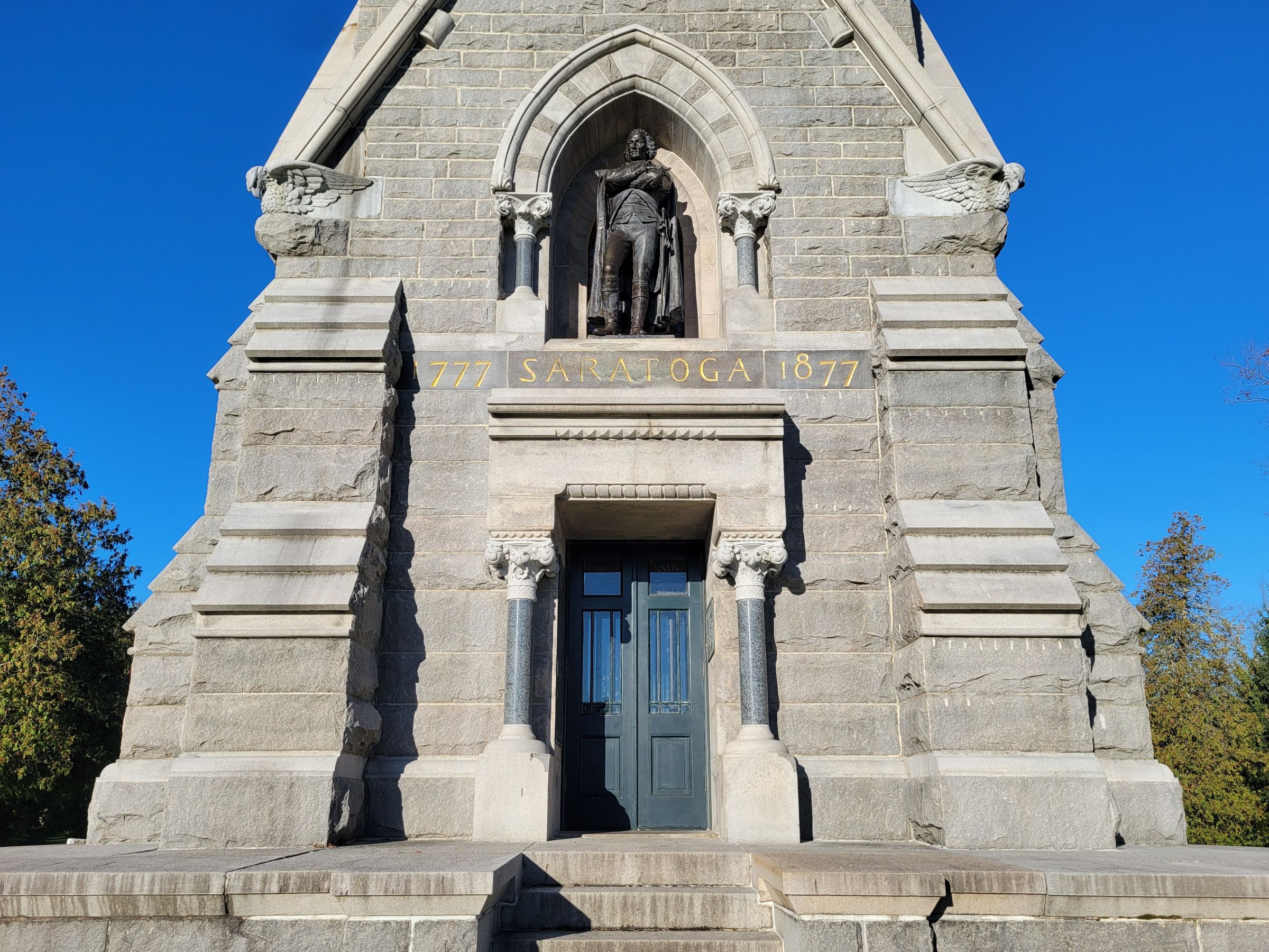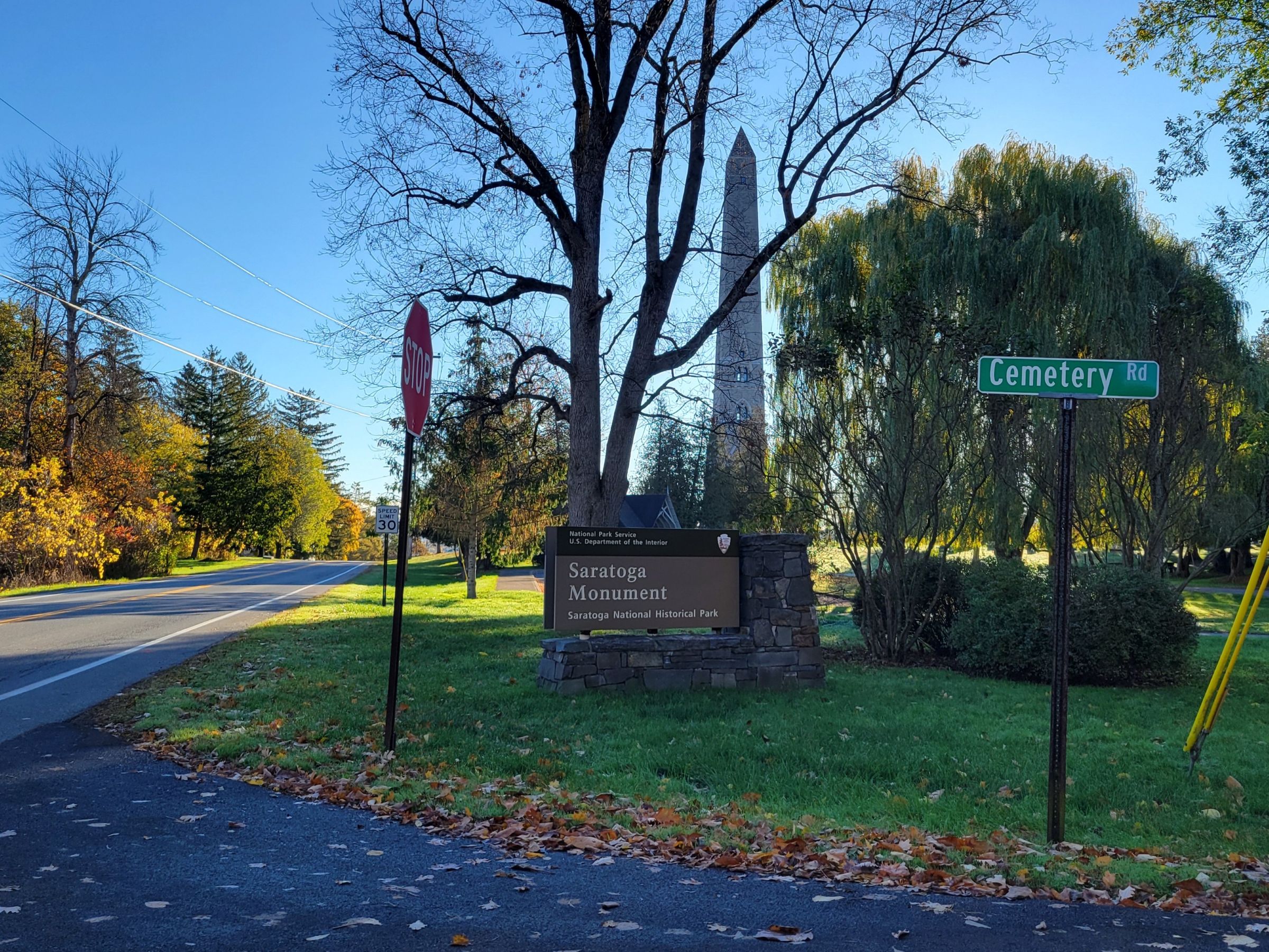 화강암으로 만든 높이 약 47m(155피트)의 오벨리스크로 전투 100주년인 1877년에 초석을 놓고 1883년에 완공된 사라토가 기념비만 한바퀴 빨리 둘러보고 다음 장소로 이동하기로 했다. 동서남북 네 방향 모두 출입문이 만들어져 있고, 그 윗층에는 흔히 조각을 세워놓는 등의 장식을 위해 벽을 파놓는 공간을 뜻하는 '벽감(壁龕, niche)'이 만들어져 있지만, 지금 보이는 남쪽은 그냥 비워져 있다...