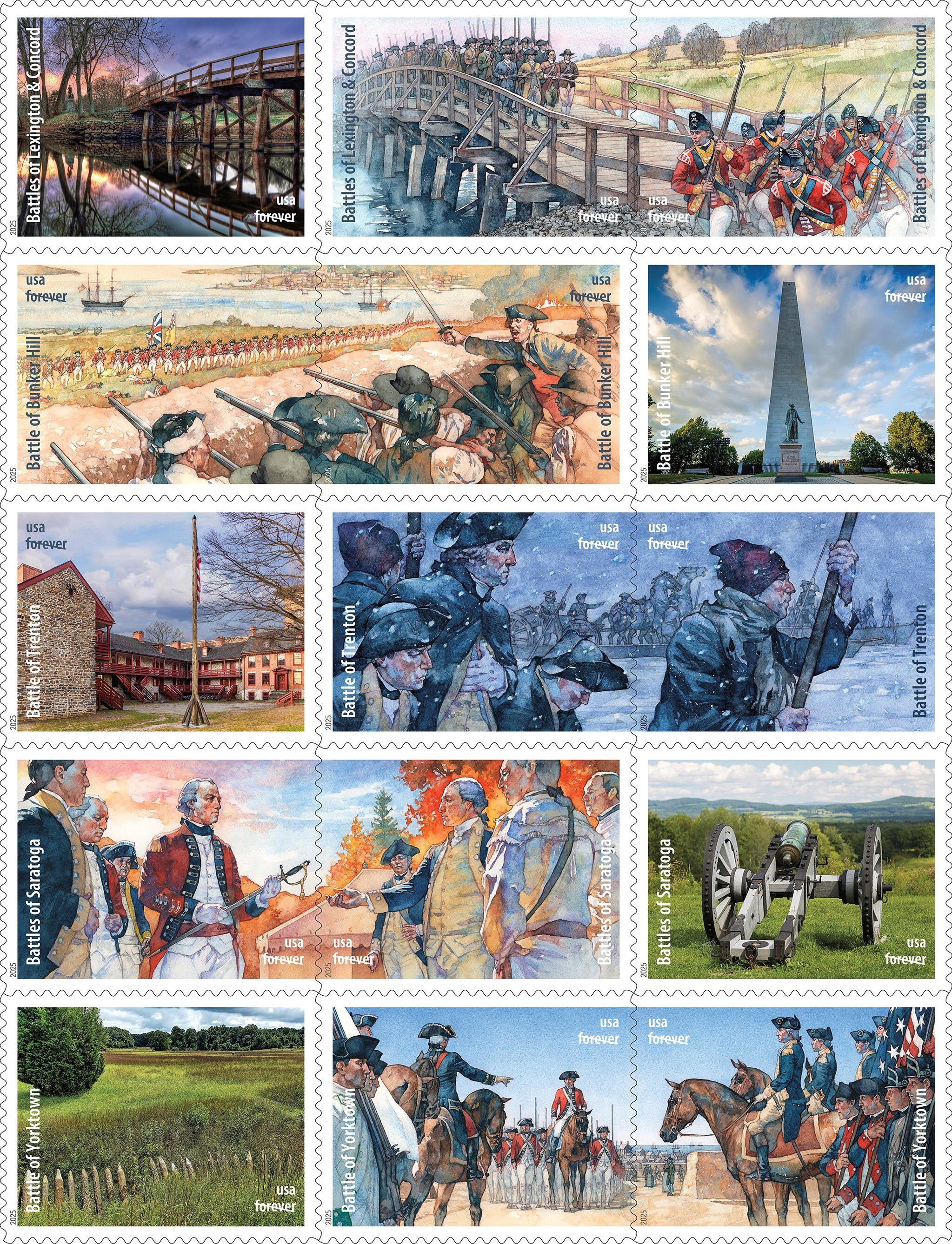 내년 2026년은 필라델피아 인디펜던스홀에서 미국이 공식적으로 영국의 식민지로부터 독립을 선언한 지 250주년(Semiquincentennial)이 되는 해이다. 하지만 미국의 혁명 전쟁(American Revolutionary War)은 1775년 4월 19일의 렉싱턴/콩코드 전투를 그 시작으로 보기 때문에, 이를 포함해 독립전쟁의 가장 중요한 5개의 전투를 기념하는 아래와 같은 우표가 올해 발행됐었다. 제일 윗줄의 Battles of Lexington & Concord는 보스턴 외곽에서 벌어져 현재 Minute Man National Historical Park로 관리되고 있는데, 예전에 주변을 몇 번 지나가기는 했지만 아쉽게도 직접 가보지는 못했다.