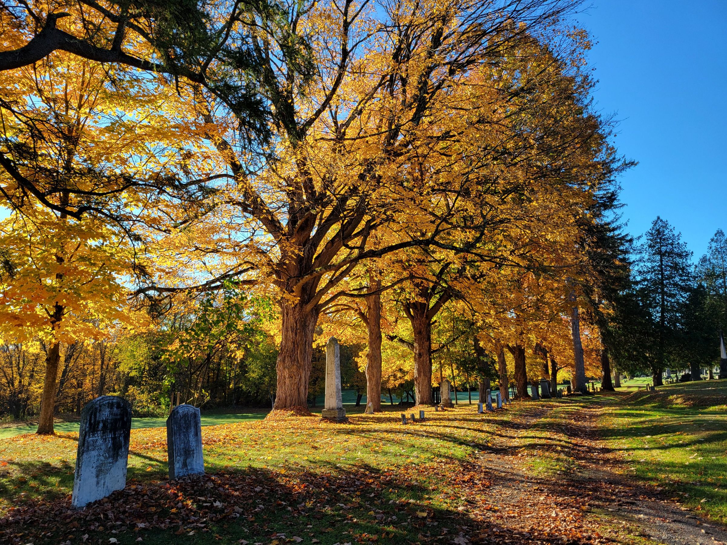 여행의 첫날에도 묘지에서 예쁜 노란 단풍을 구경했었는데 둘쨋날도...^^ 이 길을 따라 숲속으로 걸어 들어가면 참호 등을 복원해놓은 빅토리 우즈(Victory Woods)가 나온다고 하지만, 이 날도 그렇게 한가한 일정이 아니라 바로 뒤돌아서