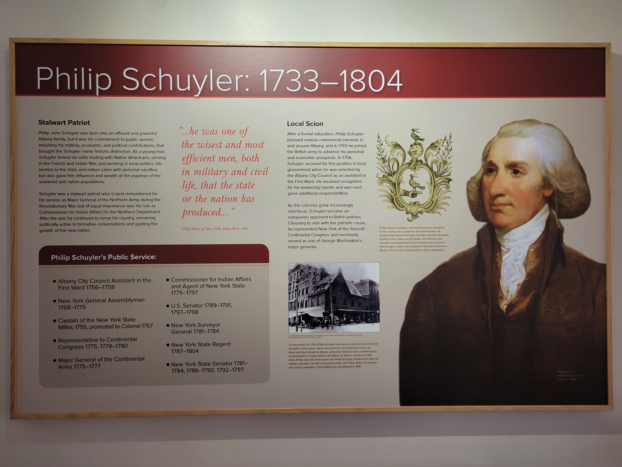 로비에는 스카일러 부부의 초상화가 좌우로 걸려 있는데, 그의 아내 캐서린 반 랜셀러(Catherine van Rensselaer)는 네덜란드 통치 시절에 거대한 영지를 하사 받아 뉴욕주에서 가장 부유하고 영향력 있던 역시 네덜란드계 렌셀러 가문 출신이었다. 한마디로 당시 뉴욕주의 정치/군사와 토지/자본을 각각 대표하는 양대 명문가의 결합이라 생각하면 된다.