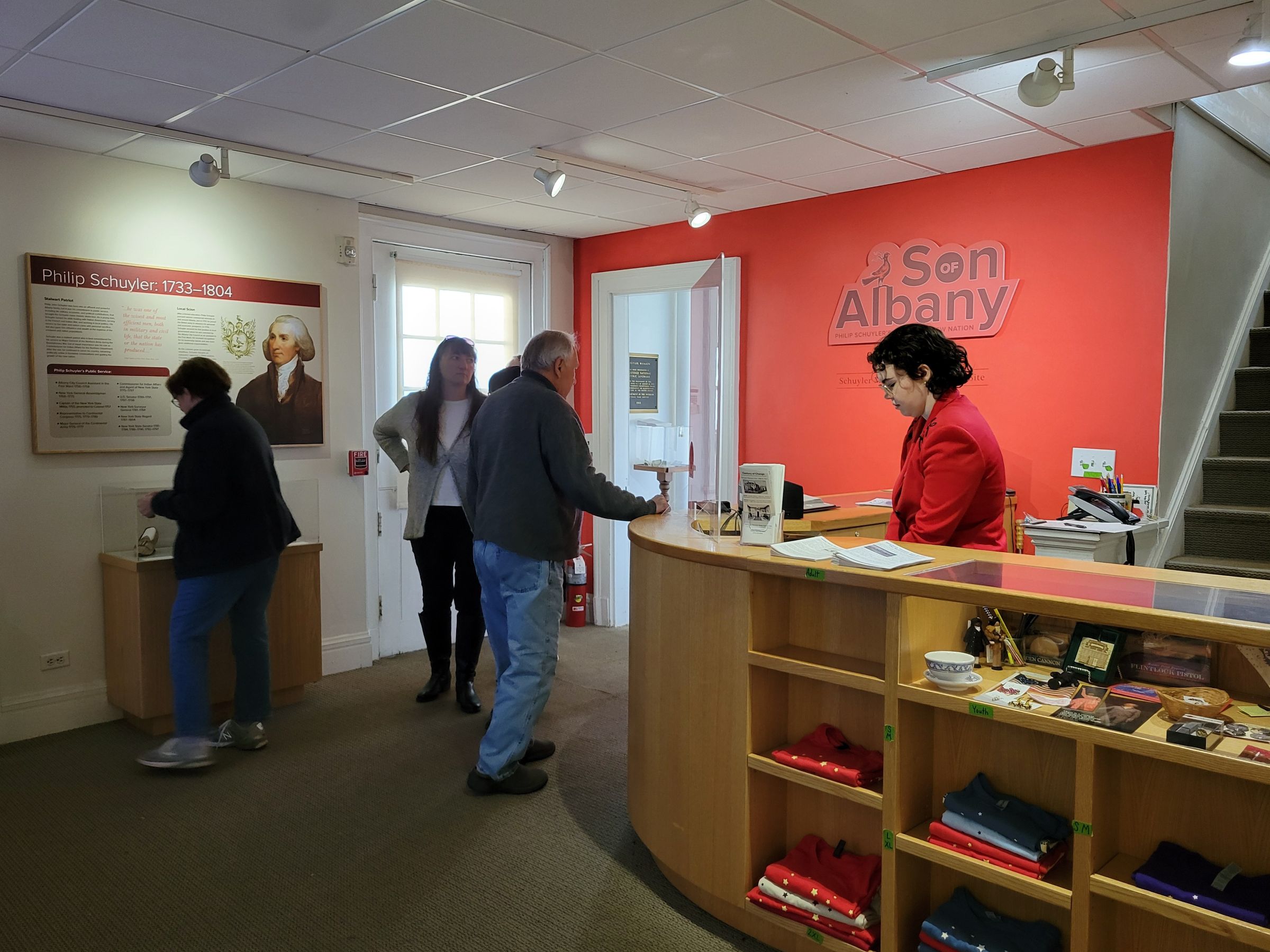 '올버니의 아들(Son of Albany)'이라는 글귀가 붙어있는 붉은 벽 앞으로 역시 빨간 옷을 입은 가이드가 보이는데, 실내의 전시를 구경하며 투어의 시작을 기다리는 사람들이 10명 정도였던 것 같다.