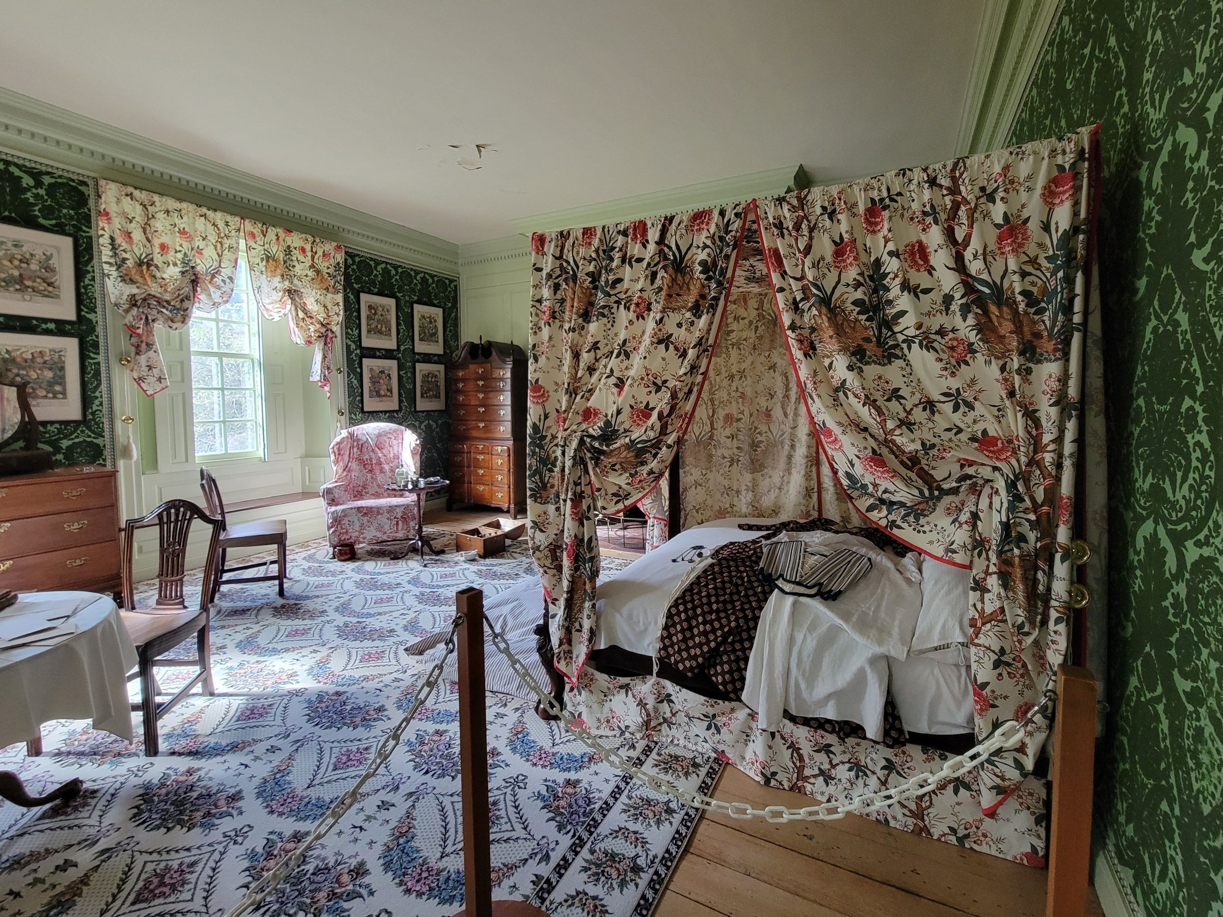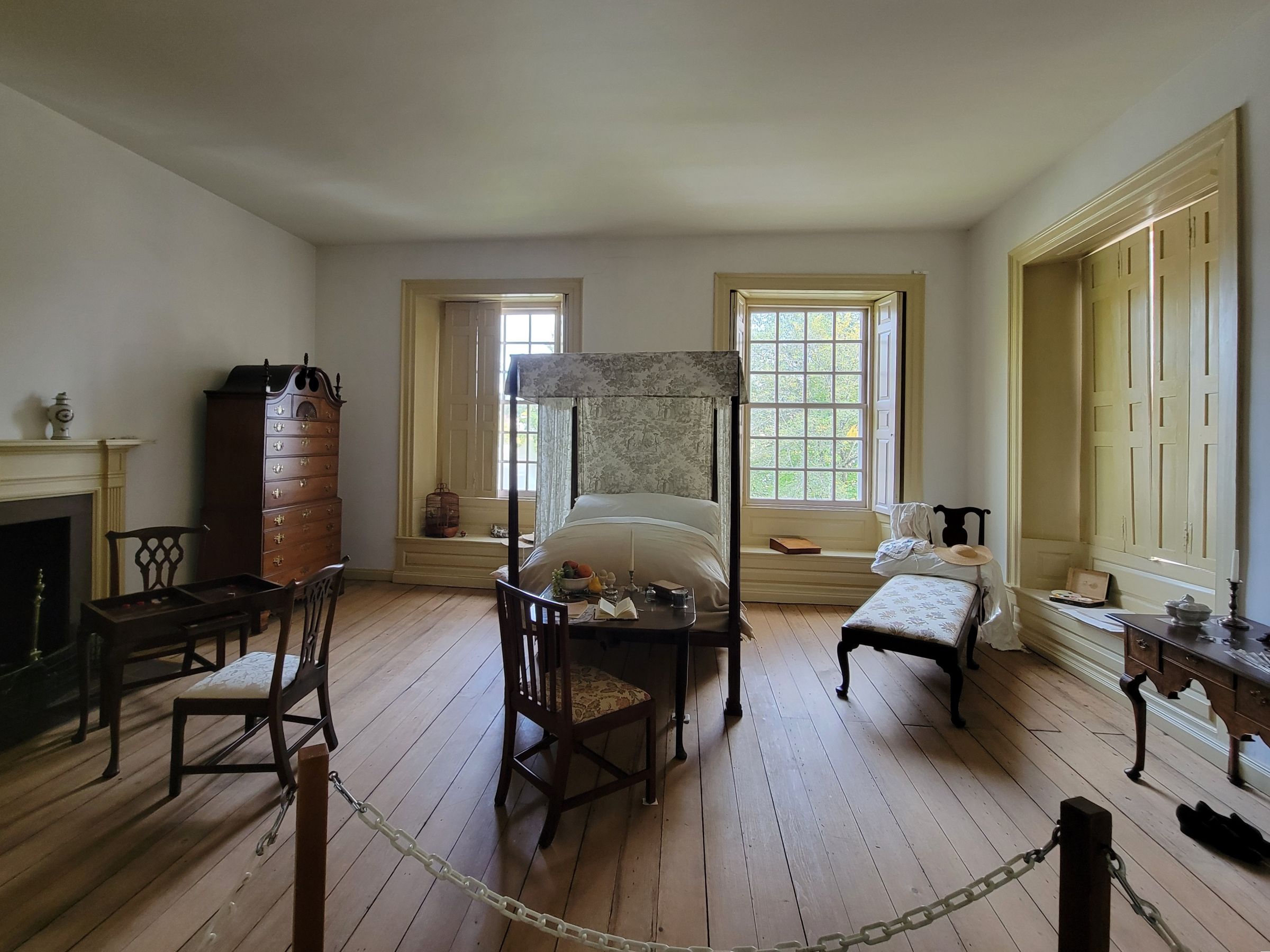 뭔가 전형적인 미국 할머니 '그래니(granny)' 스타일로 꾸며진 마스터룸의 모습인데, 재미있는 사실은 아침에 들렀던 사라토가 전쟁터에서 항복한 영국군 사령관 존 버고인(John Burgoyne)을 필립 스카일러가 초대해서 이 안방을 숙소로 내주었다고 한다. 자신들의 사라토가 마을 농장과 별장을 일부러 모두 태워버린 자를 집으로 초대한 것에 아내는 매우 화를 냈고, 비록 항복을 했다고는 하지만 적장을 귀빈 대접하는 것에 항의하는 사람들이 몰려들어, 집 주위를 대륙군들이 지키고 있어야 했단다.