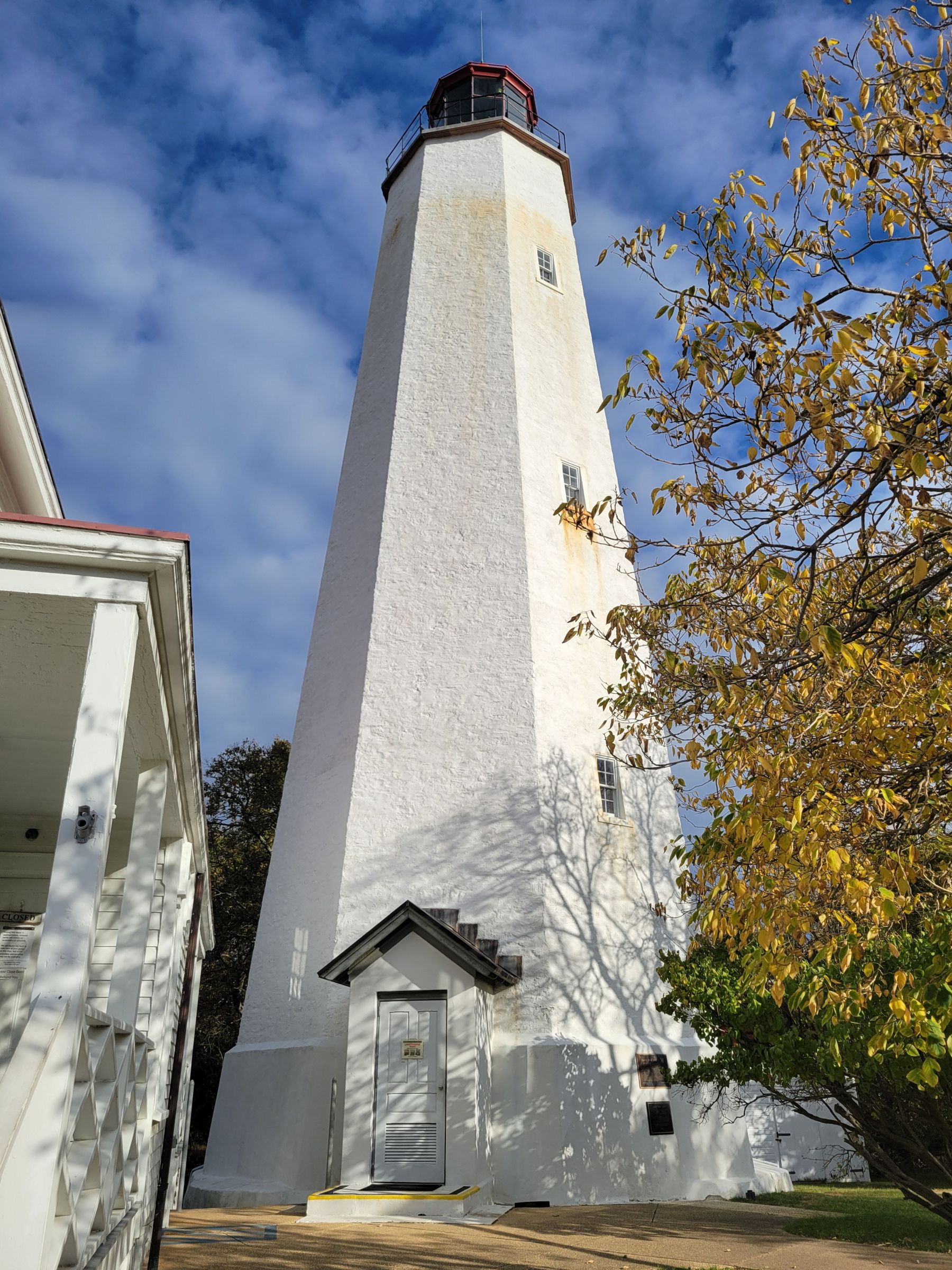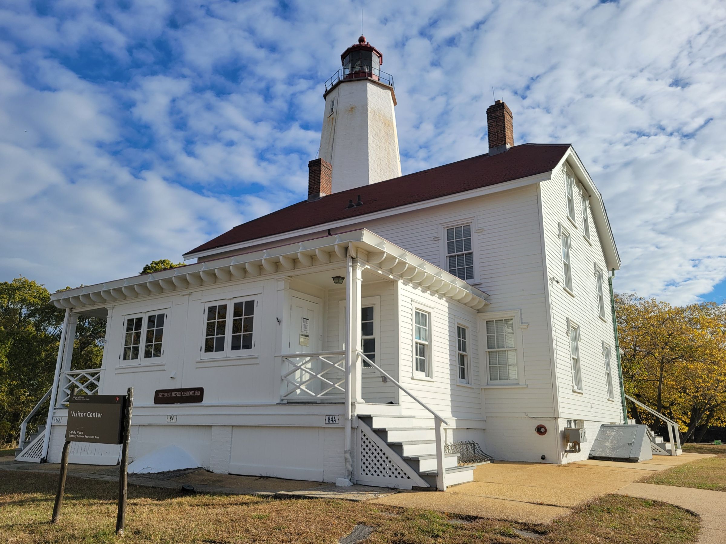 비지터센터로 운영되는 옛날 등대지기의 집을 찾아왔지만, 당시 연방정부 셧다운으로 문은 굳게 닫혀 있었다. 작게 보이는 동판에 이 건물은 1883년에 만들어졌다고 되어 있지만, 그 뒤로 우뚝 솟아있는 높이 약 31미터의 팔각형 샌디훅 등대(Sandy Hook Lighthouse)는...