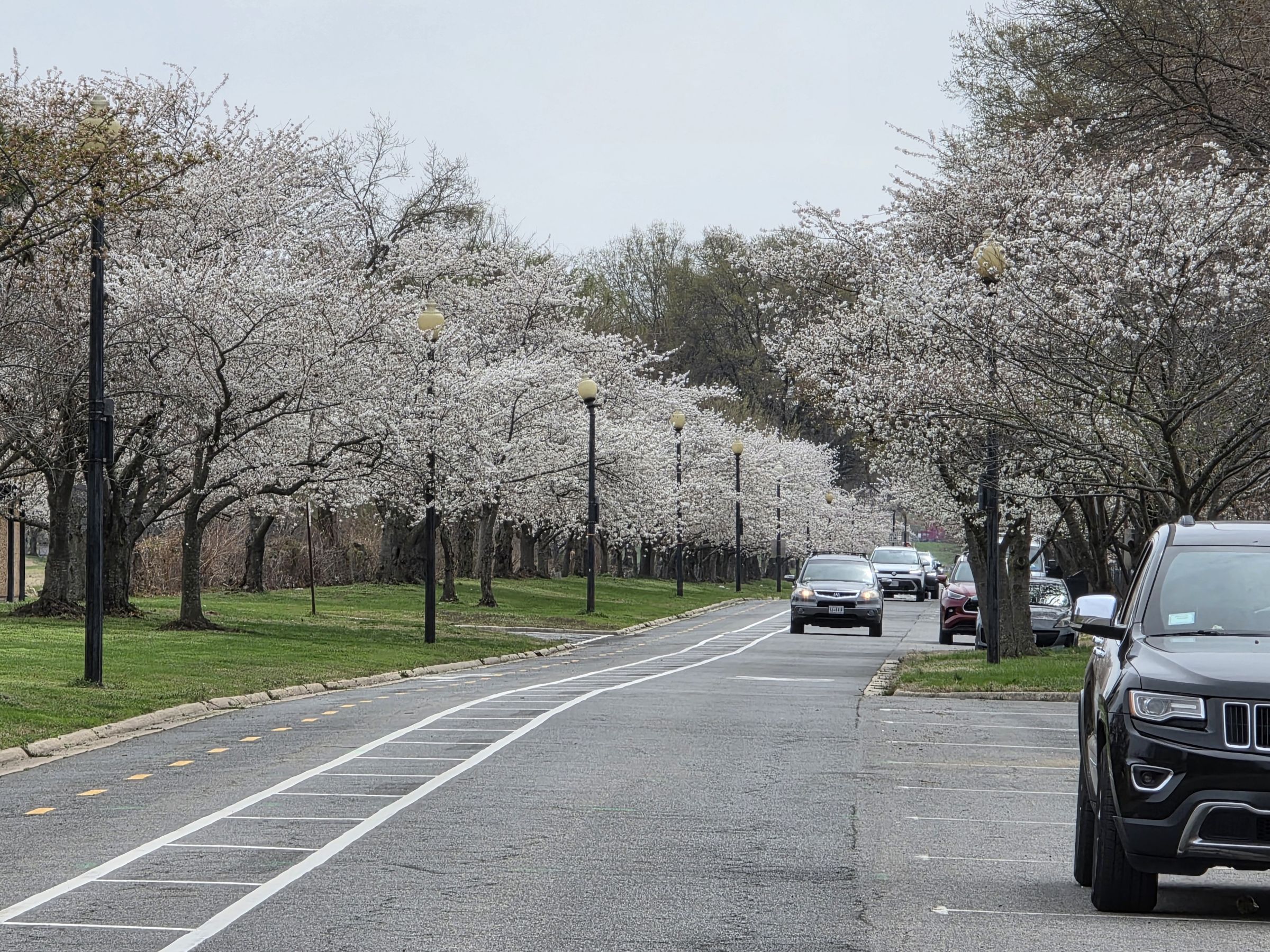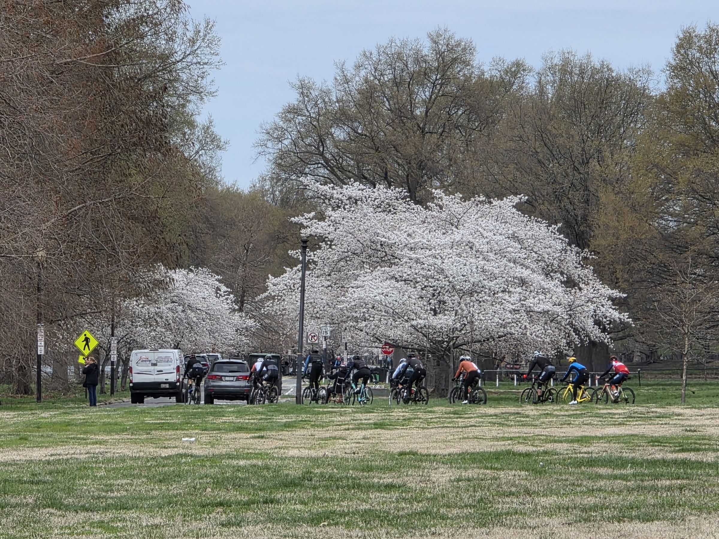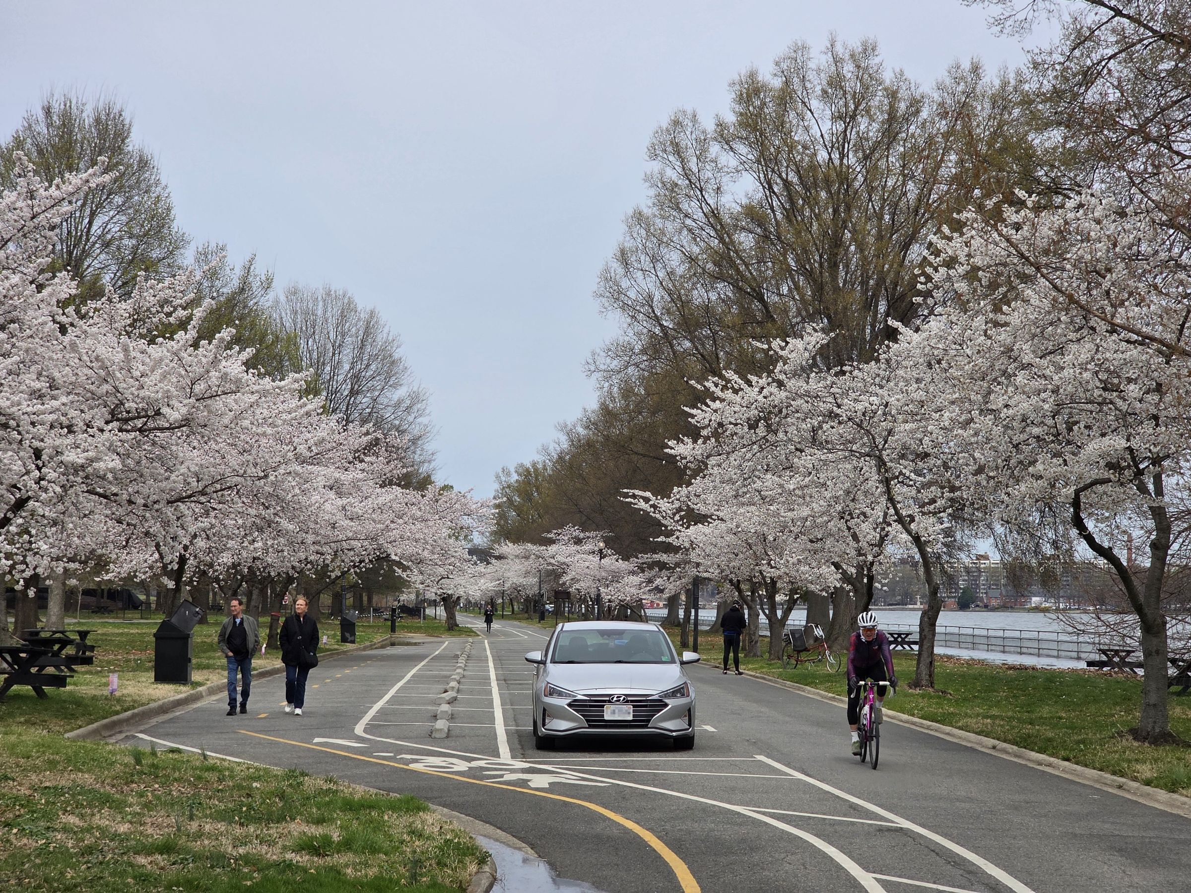 다시 풀밭을 가로질러 주차한 곳으로 돌아가는데, 평일임에도 한 무리의 자전거 동호회 사람들이 반환점을 돌아 북쪽으로 달리는게 보였다. 이제 본인도 다시 차에 올라서 구글맵에 Hains Point East Cherry Blossoms Area라 표시된 곳을 찍고 출발을 했다.