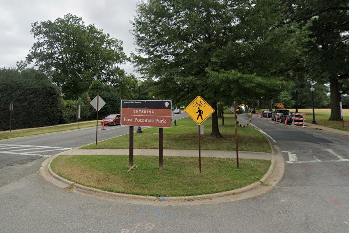 오하이오 드라이브(Ohio Dr)를 따라 제퍼슨 기념관을 지나면 바로 나오는 표지판 사진을 구글 스트리트뷰에서 가져왔는데, 공원 전체가 1880년대부터 포토맥 강의 준설토를 계속 쌓아서 만들어진 인공섬으로, 제퍼슨 기념관 바로 남쪽으로는 국립공원청 및 공원경찰 건물과 체육시설 등이 들어서 있고 그 아래 대부분의 땅은 골프장으로 개발이 되었다.